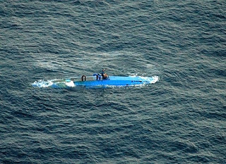 UPI has an interesting story to go along with this image from Navy NewsStand.Eagle1 saw this too, and has background on the use of semi-submersible's for drug smuggling.
