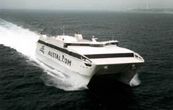 The Incat 112 metre, which forms the base of the consortium's submission, is the largest catamaran ever built in Australia. Already proven in commercial service it provides unparalled seakeeping and comfort even on rough open sea routes. Power is supplied by four diesel engines, each rated 9000 kW at 1000 rpm and consuming <190g/kwh.
