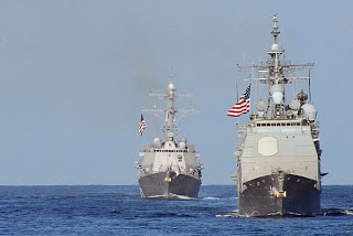 Basically every major naval platform you would want at sea in the 7th Fleet theater is at sea right now, and there are reserves on the way, and if you come across the Pacific back to the west coast, there will be even more major reserve forces at sea, and I'm not even going to count the Peleliu ESG. The Navy has intentionally not identified by name forward deployed naval forces at sea, so we will list them as 1 CV, 1 LHD, 1 LPD, 1 LSD, 2 CGs, and at least 5 DDGs currently operating at sea. We have also counted at least 5 submarines, including the USS Ohio (SSGN 726) currently on deployment in the Pacific. Additionally the following organized strike groups are at sea.