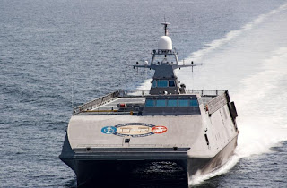 The Sea Fighter, formerly known as X-Craft, is a high speed, shallow draft vessel for littoral warfare. Deployment of the Sea Fighter can demonstrate and validate many of the Navy’s operational concepts for littoral warfare, and more specifically reduce risk in the Littoral Combat Ship program. Funding will be used to add offensive and defensive armament, improve ship survivability systems, and complete command and control.In particular, we observe that the Sea Fighter could do some good fighting pirates, because as a high speed vessel able to support RHIBs and has deck space to land two helicopters. Why do we like Sea Fighter a hell of a lot more than the LCS? I got into some talks awhile back with some good folks at L-3. OK so I gave them shit like this blog does about being an earmark away from a new contract, but still...