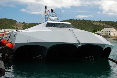 This picture and caption gives the impression SOUTHCOM is using Guantanamo Bay in the role as a coaling station for the Stiletto. If it can be done at Guantanamo Bay for the Caribbean, we wonder why the same concept wouldn't work at Djibouti, Bahrain, or Ascension Island for other small, but longer range assets addressing peacetime challenges near those areas. Note, it doesn't have to be the M-80, as many comments have pointed out many times, the Asheville class was only twice this size.