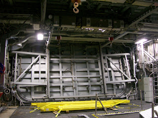 The mission zones below deck on the Lockheed Martin LCS not only look big, they feel big. The aft zone has two doors, one I liked and one I have some concerns, but will wait and see. The doors in the back of the ship supposedly swing all the way open. I've read a bit about the aft doors on the USCGC Bertholf (WMSL 750), and how that will be one aspect of the cutter changed in future ships. I'm not a fan of doors that swing all the way open. I much prefer the way the side doors open, basically out and to the sides. I don't know how the door issue on the LM LCS will work out, but I think that is one aspect of the ship to watch for.