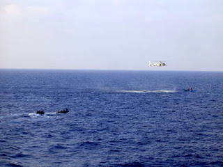 On Tuesday Somali pirates attempted to hijack the 150,000+ DWT crude oil tanker African Ruby. Unfortunately for the pirates, the French were in the neighborhood.The French navy on Tuesday foiled an attack on a cargo ship in the pirate-infested waters off Somalia and arrested nine men allegedly trying to board the vessel, the military said here.This marks the seventh action taken by the French against piracy since the French raid that arrested pirates last April. Check out the photo album of the incident at Fred Fry's place.