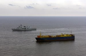 Fresh off the operations conducted by the Dutch, the Canadian Navy spends 7 full hours chasing down a pirate attack on the 80,000 ton MV Front Ardenne.Canadian sailors apprehended a band of Somali pirates at gunpoint early Sunday morning after a seven-hour pursuit across the Gulf of Aden, much of it under the cover of night.The article goes on to tell the story of the 7 hour pursuit conducted by the Canadian Navy to capture the pirates. Unfortunately, this is NATO.