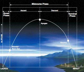 The TOP HAT engagement geometry involves a small single-warhead or multi-warhead booster launched from under the fly-out trajectory of the enemy missile, which allows the ascending booster to converge with the ascending missile - a stern-quarter attack, so to speak. The TOP HAT interceptor crosses the missile's trajectory right after apogee, when it is moving most slowly. The benefits include long engagement times (for intercepting ICBMs, up to 300 seconds), which allows shoot-look-shoot as well as cooperative multi-KKV/interceptor attacks. Engagement ranges are low, allowing simpler sensors - theoretically, including commercial off-the-shelf sensors - with converging velocities as low as 1-2 kilometers/second. The KKV could be the 1-kg Multiple Miniature Kill Vehicle (MMKV) being developed by Lockheed Martin for future Standard variants or other boosters.
