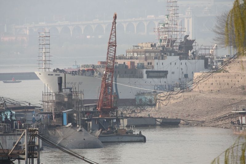 This picture shows the 6th Yuan next to that new mysterious submarine type at WuChang shipyard