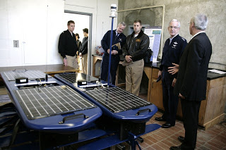 I was cruising SOUTHCOMs photo gallery the other day and came across this image.MONTEREY, Calif. (Jan. 23, 2012) -- Naval Postgraduate School Research Prof. of physics Joseph Rice describes to Commander, U.S. Southern Command Gen. Douglas Fraser, the auto-propulsion dynamics used in a long endurance wave-glider craft, which uses wave action as its thrust through water. It is tethered to a platform of solar cells and is capable of transmitting bathymetry and other oceanographic data via satellite. The two craft were recently acquired from Liquid Robotics of Sunnyvale, Calif., and will serve as test beds for NPS student research thesis. (U.S. Navy photo by Javier Chagoya/Released).When I saw the image, I was like "Eureka!" I know exactly what that is. It reminded me of this article by CDR Rawley from last year. A friend of mine once told me about his visit with the folks who make these craft. He was incredibly impressed by those smart folks and their many creative ideas.