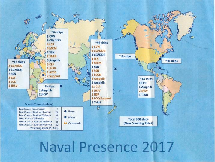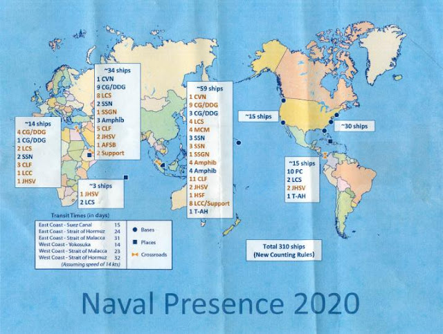 The requirement appears to be around 1200 VLS in the Middle East in 2017, and 1500 VLS in the Pacific in 2020. Also, in my opinion, with the exception of SOUTHCOM this map looks to me what a "strategy of holding the line" looks like. You know what else bothers me about this map? It is a reminder that in 2017 US forces are basically organized in traditional heavy task forces like CSGs and ARGs, and with the exception of SSGNs and the 10 PCs in SOUTHCOM, nothing about this map sticks out as having a capability that is inherently disruptive for a bad actor in any specific area. LCS and JHSVs will be useful for their limited purposes, which is ISR and engagement respectively, but the US Navy has a shortage of assets that stand out as disruptive - punching politically and diplomatically above their weight.