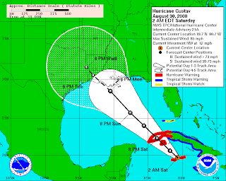 As Hurricane Gustav approaches the Gulf of Mexico the DoD is preparing its response. This article lays out all the DoD preparations, but we note the last paragraph is the naval response being prepared.Fleet Forces Command in Norfolk, Va., has given direction to three amphibious ships -- the USS Bataan, the USS Nassau and the USS Ponce -- to be prepared to sortie if needed. The command also has at its disposal additional communications, engineering, and aviation units.It is an interesting combination of ships. The USS Nassau (LHA 4) just returned from deployment a few weeks ago, while the USS Bataan (LHD 5) is probably the next Atlantic fleet LHD to forward deploy. USS Ponce (LPD 15) returned earlier this year with the Kearsarge ESG.